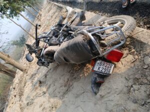 बगहा। बगहा पुलिस जिला अंतर्गत नदी थाना क्षेत्र के रतवल धनहा मुख्यमार्ग में बाइक व गन्ना लदी ट्रैक्टर में भिड़ंत हो गई, जिसमे बाइक सवार दो लोग जख्मी हो गए है। घटना की सूचना मिलते ही मौके पर पहुँची नदी थाना कि पुलिस ने दुर्घनाग्रस्त बाइक व चालक को बाहर निकाला, वही दुर्घटना में घायलों को इलाज हेतु मधुबनी पीएचसी में भेज दिया है। वही जानकारी देते हुए नदी थानाध्यक्ष संजय कुमार ने बताया कि ट्रैक्टर व बाइक को कब्जे में लेते हुए आगे की कार्यवाही में पुलिस जुट गई है। वही बाइक सवार घायल व्यक्ति की पहचान राजू बीन पिता रामाशीष बीन ग्राम रंगललही थाना धनहा के रूप में हुई है।