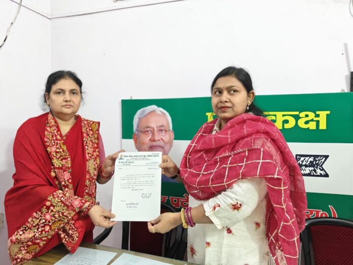 बगहा/मधुबनी। बिहार प्रदेश जनता दल (यू०) महिला प्रकोष्ठ की प्रदेश अध्यक्ष डॉ० भारती मेहता ने बगहा जिला भितहा निवासी श्रीमती मोनिल देवी को प्रदेश महासचिव मनोनीत किया है। यह निर्णय उनके अनुभव और पार्टी के प्रति उनकी निष्ठा को देखते हुए लिया गया है।डॉ० भारती मेहता ने कहा है कि श्रीमती मोनिल देवी की सक्रिय भूमिका से पार्टी को मजबूत, धारदार और गतिशील बनाने में मदद मिलेगी। उन्हें पूरा विश्वास है कि श्रीमती मोनिल देवी अपनी सार्थक भूमिका से पार्टी को नया आयाम देने की हरसंभव कोशिश करेंगी। यह निर्णय बिहार प्रदेश जनता दल (यू०) महिला प्रकोष्ठ के लिए एक महत्वपूर्ण कदम है, जो महिला सशक्तिकरण और पार्टी के विकास को बढ़ावा देने में मदद मिलेगी। वही प्रदेश जनता दल (यू०) महिला प्रकोष्ठ में प्रदेश महासचिव मनोनीत किए जाने से भितहा प्रखंड के जदयू कार्यकर्ताओं में खुशी की लहर है,तथा बधाई देने की तांता लगा हुआ है।