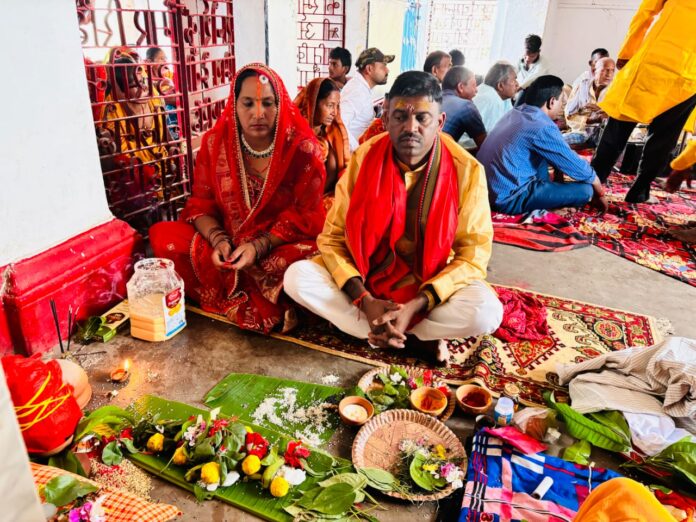 बिहार/बाँका। प्रखंड के तेलिया पहाड़ पंचायत के मुखिया सह प्रखंड संघ मुखिया संघ के उपाध्यक्ष विनय कुमार सिंह के द्वारा पंचायत के महेशपुर पहाड़ी पर स्थित प्राचीन शिव मंदिर के प्रांगण में दो दीप से अखंड रेंड कीर्तन का आयोजन आज रविवार से प्रारंभ कर दिया गया। जो सोमवार को समाप्त हो जाएगा। इस मौके पर उपस्थित मुखिया विनय कुमार सिंह के द्वारा बताया गया कि पंचायत के चौमुखी विकास एवं पंचायत वासियों के सुख शांति एवं समृद्धि को लेकर प्रशासनिक पदाधिकारी के साथ-साथ ईश्वर का भी असीम आशीर्वाद अति आवश्यक है यह दो दिवसीय अखंड राम धुन कीर्तन पंचायत वासियों की प्रेरणा से यह कार्यक्रम आयोजित की जा रही है। इन्होंने यह भी बताया कि अखंड राम धुन विद्वान पंडितों के वैदिक मंत्र उच्चारण के द्वारा धूमधाम से प्रारंभ किया गया इस धार्मिक अनुष्ठान के मौके पर पंचायत के दर्जनों महिला पुरुष श्रद्धालुओं द्वारा भाग लिया गया है।