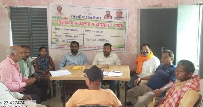 बेतिया/वाल्मीकिनगर। पंचायत भवन परिसर में शारदीय खरीफ़ किसान चौपाल का आयोजन किया गया। चौपाल में फसलों में लगने वाले कीटाणुओं से कैसे रक्षा की जाएगी और किन दवाइयों का प्रयोग कर अधिक पैदावार लिया जा सकता है, इसकी जानकारी दी गई। इस अवसर पर प्रखंड तकनीकी प्रबंधक शशांक नवल ने किसानों को संबोधित करते हुए कहा कि किसान सम्मान निधि के लिए डॉक्यूमेंट अपडेट करने होंगे।