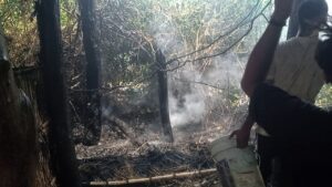बेतिया/वाल्मीकिनगर। थाना क्षेत्र के लव कुश घाट गांव में रविवार की दोपहर शॉर्ट सर्किट से एक झोपड़ी में आग लग गई। ग्रमीणों की तत्परता से एक घंटे की मशक्कत के बाद आग पर काबू पाया जा सका। हालांकि इससे किसी को कोई नुकसान नहीं हुआ है। ग्रामीणों की माने तो रविवार की दोपहर बिहानी उरांव के झोपड़ी में अचानक बिजली के तार में शॉर्ट सर्किट होने से आग लग गई। शोर मचाने पर आस-पास के ग्रामीण भी आ गए। करीब एक घंटे की मशक्कत के बाद ग्रामीणों ने आग पर काबू पाया।