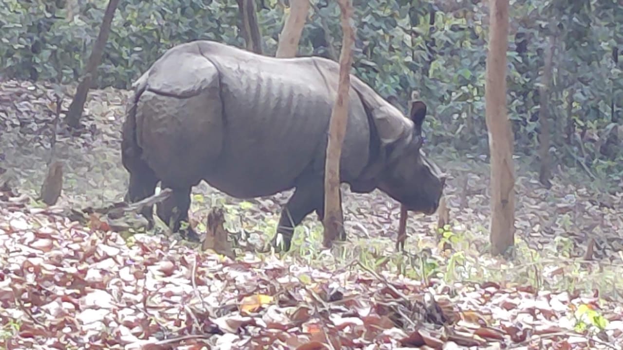 जंगल सफारी के दौरान पर्यटकों को गैंडे का हुआ दीदार।