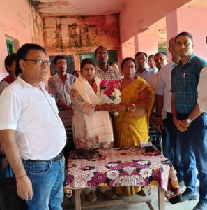 बिहार/बांका। फुल्लीडुमर प्रखंड अंतर्गत ग्राम पंचायत राता के +2 स्वर्ण मुखि उच्य माध्यमिक विद्यालय धनकुरिया में प्राचार्य के रुप में डाक्टर नीतू कुमारी द्वारा योगदान के लिए पहुंचे पूर्व से प्रभारी के रुप में कार्य कर रही संगीत कुमारी के द्वारा योग दान लेती हुई अपना कार्य भार डाक्टर नीतू कुमारी को दे दिया गया। इसी विधालय से समाजिक विज्ञान की शिक्षिका शू श्री शीतल शर्मा स्थानान्तरण अपने गृह जिला जमूई हो गया है। विधालय प्रांगण में स्वागतम सम्मान समारोह का आयोजन पूर्व प्रभारी संगीता कुमारी की अध्यक्षता में आयोजीत करते हुए। एक का सम्मान समारोह एवं एक का विदाई समारोह किया गया दोनों को विधालय शिक्षको एवं शिक्षीकाओ के द्वारा अंग वस्त्र कू साथ साथ गुलदस्ता भेंट करते हुए स्वागत किया गया इसके साथ ही विधालय के बचचीयो द्वारा स्वागत गीत एवं विदाई गीत गाते हुए भी स्वागत किया गया इस मोके पर सेवानिवृत्त पूर्व प्रभारी प्रधानाध्यापक परमानन्द राय ,विजय शेखर आजाद ,संजय कुमार , दीनबंधु कुमार ,प्रदीप कुमार , पल्लवी मंडल ,विनय कुमार , पीयूष कुमार , बबलू कुमार ,सहायक शिक्षक के रुप में उपस्थित थे।