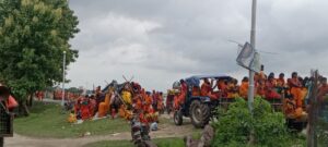 झमाझम बारिश में पेड़ों के नीचे प्लास्टिक के सहारे शिव भक्तों ने गुजारी रात