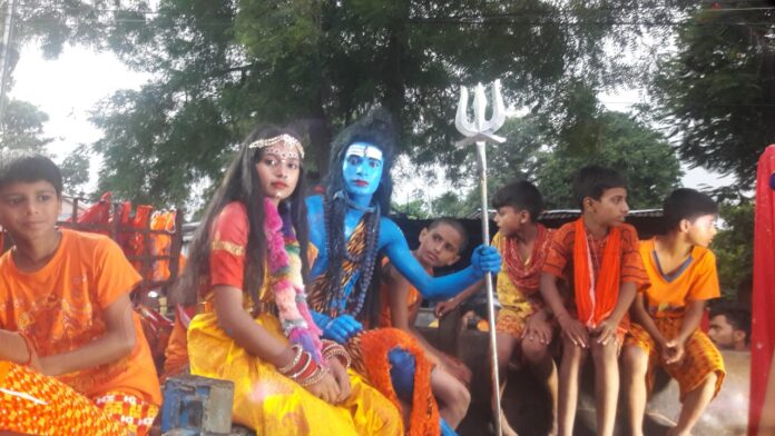 बेतिया/वाल्मीकिनगर। वाल्मीकि नगर स्थित त्रिवेणी संगम तट पर श्रद्धालुओं की जबरदस्त भीड़ शुक्रवार और शनिवार को उमड़ी।तरह तरह की झांकियों के डीजे व गाजेबाजे के साथ शिवभक्ति गीतों पर थिरकते अपने अपने शिवालयों की तरफ चलते रहे।लेकिन इन झांकियों में नरकटियागंज से आए शिवभक्तों के जत्थे की शिव पार्वती की झांकी आकर्षण का केंद्र रहा। इस झांकी ने सभी का मन मोह लिया,शिव के रूप में बने युवक ने अपने भावभंगिमा और नटराज नृत्य से सभी को आकर्षित किया। बतादें की जब झांकी गोलचौक परिसर पहुंची तो देखते देखते लोगों की भीड़ लग गई और लोग इसका वीडियो बनाने लगे।कई लोगों ने सेल्फी भी ली और सोशल मीडिया पर वायरल भी कर दिया।
