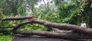 वाल्मीकिनगर बगहा मुख्य पथ पर गिरा पेड़, आवागमन हुआ बाधित।