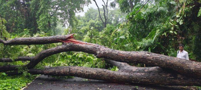 बेतिया/वाल्मीकिनगर। नेपाल की तराई क्षेत्र से लेकर भारतीय सीमा में पिछले 48 घंटे से हो रही बारिश से बगहा वाल्मीकिनगर- बगहा मुख्य पथ पर तेज हवा और बारिश के कारण विशाल पेड़ गिरने के कारण आवागमन पूर्णतः बाधित रहा। चमैनिया मोड़ ,धोबहा पुल व जलेबिया मोड़ के पास विशाल पेड़ गिरने के कारण घंटों तक यात्री वाहनों में फंसे रहे। वाहन चालक कई जगहों पर पेड़ गिरने की सूचना पाकर, वाहनों के रूट में तब्दीली कर घंटों लेट से यात्रियों को उनके मंजिल तक पहुंचाया। इस दौरान बगहा जाने के लिए यात्री वाहनों का इंतजार करते रहे। इधर बारिश भी रुकने का नाम नहीं ले रहा था। वहीं मौसम विभाग द्वारा जारी रिपोर्ट के अनुसार अगले 5 दिनों तक तेज हवा वह गरज के साथ है बारिश होने की संभावना है। पर्यवेक्षक सुधांशु कुमार ने बताया कि इस दौरान लोगों को सतर्क रहने की जरूरत है। विशेष जरूरी होने पर ही घरों से बाहर निकले। हालांकि इस बारिश से किसानों को बहुत फायदा हुआ है। धान और गन्ने की फसल को नया जीवन मिला है।