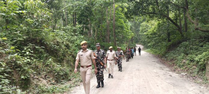 वाल्मीकि नगर रेंज में एसएसबी और वन विभाग के जवानों ने की संयुक्त गश्त।