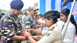 महिला स्वाभिमान वाहिनी की प्रशिक्षुओ के द्वारा देश की सेवा में लगे SSB के जवानों एवं बिहार पुलिस के कार्मिकों, गंडक बैराज के कर्मियों की कलाईयों पर राखियां बांधी।