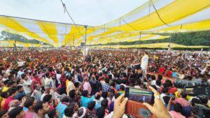 पश्चिम चंपारण। जन सुराज के सूत्रधार प्रशांत किशोर अपनी ‘बिहार बदलाव यात्रा’ के तहत लगातार अलग – अलग जिलों और प्रखंडों में लोगों से संवाद कर रहे हैं। और स्थानीय पत्रकारों से भी बात कर रहे हैं। इसी कड़ी में आज उन्होंने पश्चिम चंपारण के बगहा नगर परिषद अंतर्गत बबुई टोला मैदान में आयोजित बिहार बदलाव सभा को संबोधित किया।