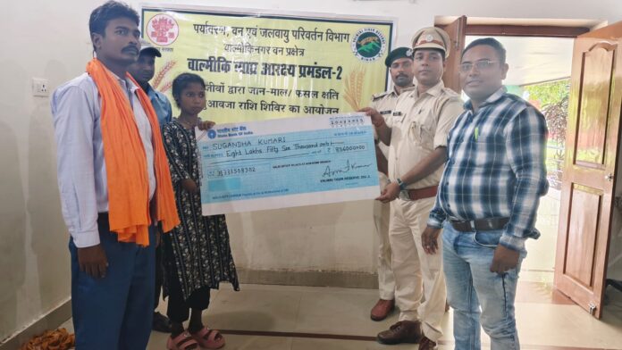 बेतिया/वाल्मीकिनगर। वन विभाग ने वन्यजीवों के द्वारा पहुंचाए गए नुकसान के क्षतिपूर्ति का भुगतान बुधवार को कैंप लगा किया गया है। इस बाबत वाल्मीकिनगर रेंजर अमित कुमार ने बताया कि सुगंधा कुमारी पिता हीरालाल मांझी को 10 लख रुपए की आर्थिक सहायता दी गई है। 2024 में मगरमच्छ के हमले में दांया हाथ गंवाने वाली सुगंधा कुमारी, पिता हीरालाल मांझी, ग्राम संतपुर सोहरिया को मुआवजा के रूप में 8 लाख 56 हजार की राशि दी गई है।