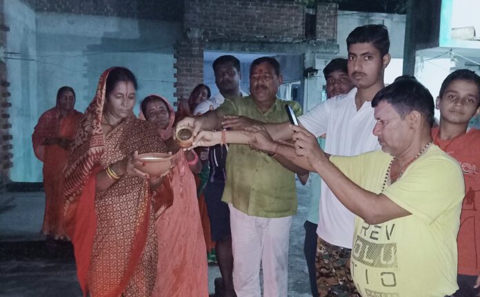 अपने पति के दीर्घायु एवं अखंड सौभाग्य बति रहने को लेकर किया महिलाओं ने तीज व चौठचंद्र का ब्रत