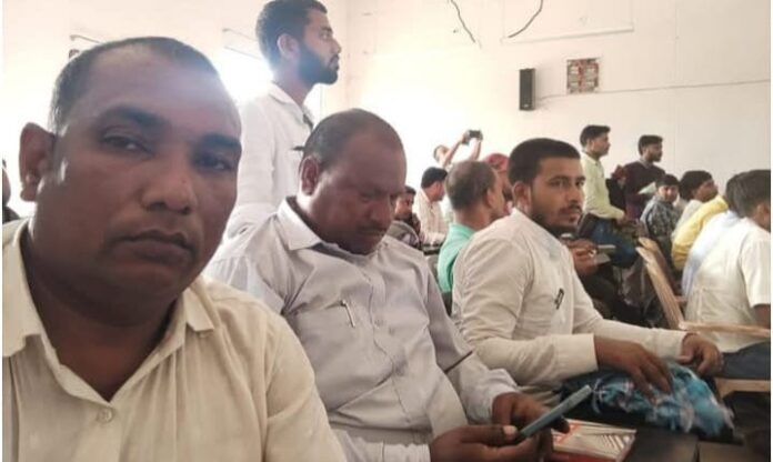 माता थान दुर्गा मंदिर प्रांगण में 8 सूत्री मांगों को लेकर स्वच्छता पर्यवेक्षक के द्वारा एक दिवसीय बैठक आयोजित की।