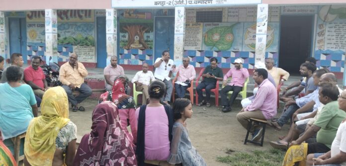 बेतिया/वाल्मीकिनगर:- थाना क्षेत्र के लक्ष्मीपुर रमपुरवा पंचायत के ठाढ़ी गांव में रविवार की शाम सीमा जागरण मंच इकाई पुलिस जिला बगहा के सदस्यों की एक बैठक आहूत की गई। बैठक की अध्यक्षता सीमा जागरण मंच के पूर्णकालिक महामंत्री गोविंद कुमार यादव ने किया। अन्य सदस्यों में संगठन संरक्षक दिनेश कुमार गुप्ता, कृष्णदेव प्रसाद केसरी, बबलू सिंह संपर्क प्रमुख प्रेम कुमार, मंत्री संजय कुमार यादव शाहिद ठाढी गांव के वार्ड सदस्य अजय कुमार एवं ग्रामीण मौजूद रहे। इस बैठक में ठाढ़ी गांव के पुरुष एवं महिलाओं ने बढ़ चढ़कर हिस्सा लिया। बैठक में उपस्थित ग्रामीण महिला एवं पुरुषों को संबोधित करते हुए जिला महामंत्री गोविंद कुमार यादव ने बताया कि हिंदू समाज में धर्म परिवर्तन और लव जिहाद का खेल आए दिन हो रहा है। यह षड्यंत्र जिनके द्वारा भी किया जा रहा है, उनके ऊपर नजर बनाई गई है। जो लोग हिंदुओं को बहला फुसलाकर दूसरे धर्म में धकेल रहे हैं, उन्हें मिलने वाली सरकारी सुविधाओं पर रोक लगाई जाएगी। साथ ही हिंदू लड़कियों को धर्म परिवर्तन कर मुस्लिम समाज में शादी विवाह कराया जा रहा है, जो हिंदुत्व के लिए खतरा बनता जा रहा है। इस पर रोक लगाने के लिए हम सभी को एकजुट होना होगा। उन्होंने ग्रामीणों से आग्रह किया कि जहां कहीं भी धर्म परिवर्तन का खेल खेला जा रहा है उसके बारे में केवल जानकारी देना है। बाकी का काम संगठन खुद करेगा। आगामी बैठक में कहां-कहां धर्म परिवर्तन हो रहा है और कौन-कौन लोग इसमें संलिप्त हैं, उनके बारे में जानकारी जुटा कर आगे की कार्रवाई करने की प्रक्रिया शुरू की जाएगी।
