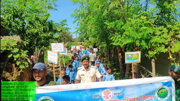 बेतिया/वाल्मीकिनगर:- वाल्मीकि टाइगर रिजर्व वन प्रमंडल दो के भेड़िहारी वन प्रक्षेत्र पर्यावरण वन एवं जलवायु परिवर्तन विभाग बिहार सरकार द्वारा 17 सितंबर से लेकर 2 अक्टूबर तक मनाए जाने वाले सेवा पर्व के 9 वें दिन वन विभाग द्वारा छात्र-छात्राओं के साथ प्रभात फेरी निकाली गई। जिसमें रोहुआ टोला प्राथमिक विद्यालय के छात्र-छात्राओं ने हिस्सा लिया। इस बाबत रेंजर अमित आनंद ने बताया कि इस कार्यक्रम में कबड्डी,दौड़,लंबी कूद, उंची कूद, चित्रकला एवं क्विज प्रतियोगिता के साथ साफ सफाई करने का कार्यक्रम रखा गया है।