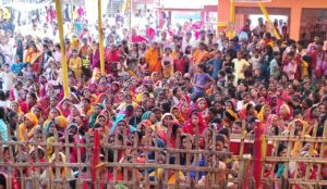 बेतिया/मझौलिया। मझौलिया में शारदीय नवरात्र के अवसर पर सप्तमी तिथि को मां दुर्गा की भव्य डोली यात्रा निकाली गई, जिसमें हजारों श्रद्धालुओं ने भाग लिया। यात्रा के बाद जैसे ही मां दुर्गा का पट्ट खोला गया, मंदिर परिसर में दर्शन के लिए श्रद्धालुओं की भारी भीड़ उमड़ पड़ी। पूरे क्षेत्र में भक्तिमय वातावरण देखने को मिला, ढोल-नगाड़ों, शंखध्वनि और जयकारों से माहौल गूंज उठा। यह भव्य आयोजन सर्वोदय दुर्गा पूजा समिति के तत्वावधान में किया गया।
