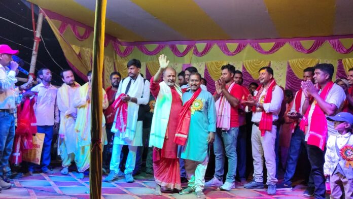 आज के युवा अगर जागरूक होंगे, शिक्षित होंगे, तभी एक बेहतर समाज की नींव रखी जा सकती है। उन्होंने कहा कि ज्ञान मंच न केवल एक पुस्तकालय के रूप में काम करेगा, बल्कि यह एक ऐसा केंद्र बनेगा जहां विचारों का आदान-प्रदान होगा, बच्चों को मार्गदर्शन मिलेगा और ग्रामीण क्षेत्र के लोग भी तकनीकी और सामाजिक जानकारी से जुड़ सकेंगे। कार्यक्रम में उन्होंने दुर्गा पूजा की भी चर्चा की। उन्होंने कहा, “दुर्गा पूजा सिर्फ एक धार्मिक पर्व नहीं है, बल्कि यह एक सांस्कृतिक आंदोलन की तरह है, जो हमें शक्ति, साहस और विजय का संदेश देती है। मां दुर्गा नौ रूपों में प्रकट होकर अन्याय, अधर्म और अत्याचार का अंत करती हैं। यह पर्व हमें सिखाता है कि अगर हमारी नीयत सही है और इरादे मजबूत हैं, तो किसी भी बुराई से लड़ा जा सकता है। उन्होंने युवाओं को संबोधित करते हुए कहा कि वे दुर्गा के रूप से प्रेरणा लें उनके अंदर की शक्ति को पहचानें, अन्याय के खिलाफ आवाज उठाएं और समाज में सकारात्मक परिवर्तन लाएं। इस अवसर पर मंच का संचालन पूजा समिति के अध्यक्ष भरत राज ने किया। तथा उन्होंने आगंतुक सभी अतिथियों को अंग वस्त्र देकर सम्मानित किया। और कहा कि इस तरह का पूजा पाठ गांव के विकास की दिशा में एक अहम कदम हैं।