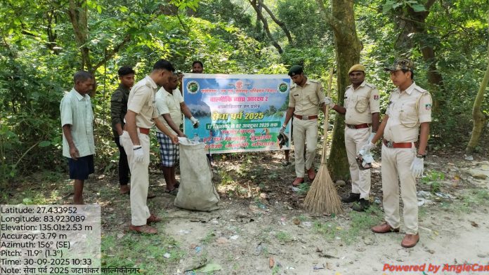 बेतिया/वाल्मीकिनगर:- वाल्मीकिनगर में चल रहे सेवा पखवाड़े के तहत वन विभाग ने स्वच्छता अभियान चलाया। मंगलवार को रेंजर अमित कुमार के नेतृत्व में जटाशंकर चेक नाका परिसर में विशेष साफ-सफाई की गई। इस अभियान में सभी वनकर्मियों ने भाग लिया और पूरे परिसर की साफ-सफाई सुनिश्चित की। इसका उद्देश्य लोगों को स्वच्छता और पर्यावरण संरक्षण के प्रति जागरूक करना था। इस अवसर पर रेंजर ने उपस्थित वनकर्मियों को स्वच्छता के महत्व और उसके फायदों के बारे में बताया। उन्होंने सभी को स्वच्छता बढ़ाने और सिंगल यूज प्लास्टिक का उपयोग न करने की शपथ दिलाई।