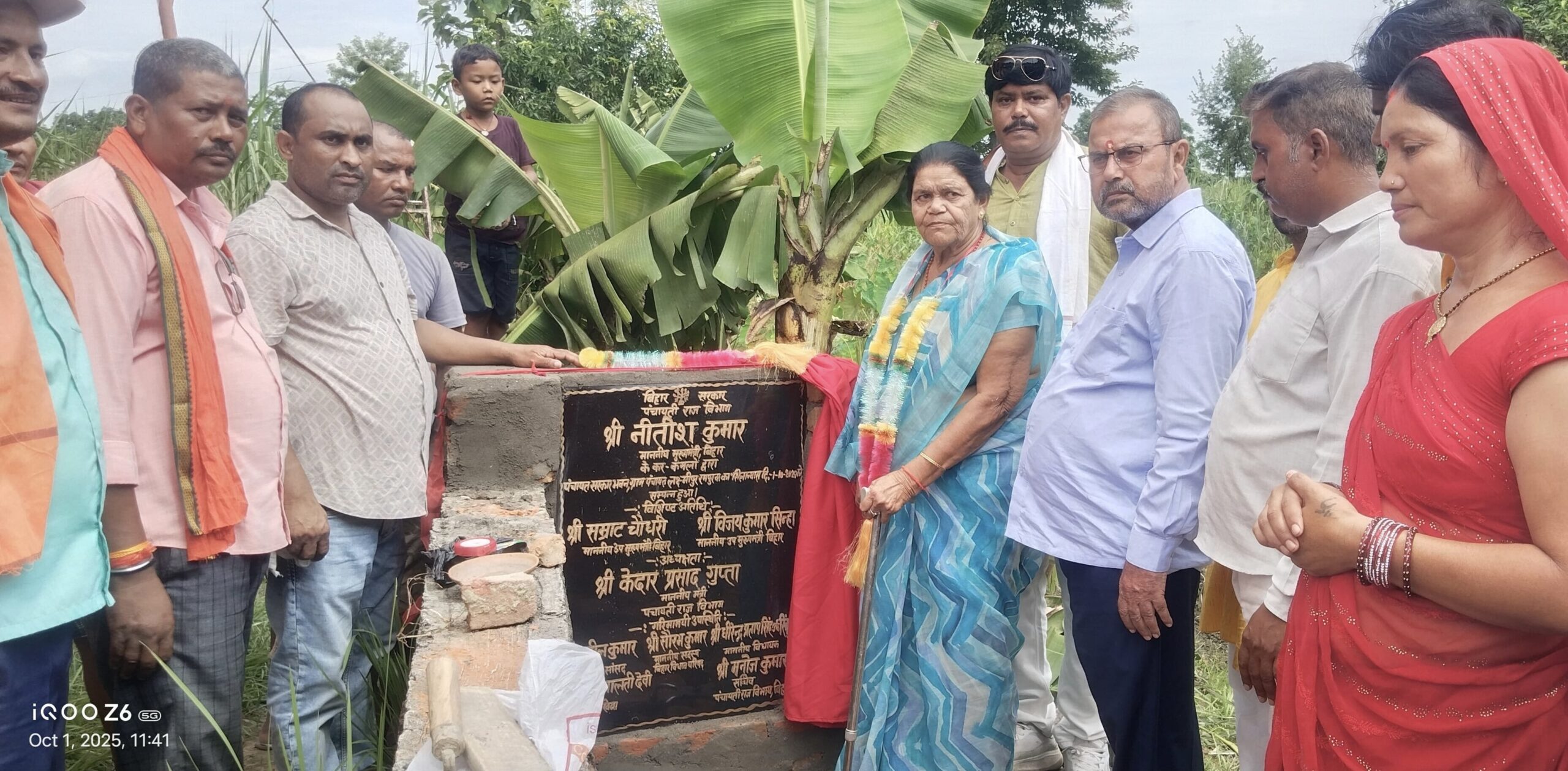 बेतिया/वाल्मीकिनगर:- थाना क्षेत्र के लक्ष्मीपुर रमपुरवा पंचायत के लक्ष्मीपुर गांव में विगत बुधवार को मुखिया मालती देवी द्वारा लगभग 3 करोड़ की लागत से बनने वाला सरकार पंचायत भवन का शिलान्यास किया गया। इससे पूर्व बिहार के मुख्यमंत्री नीतीश कुमार एवं उपमुख्यमंत्री सम्राट चौधरी द्वारा वीडियो कॉन्फ्रेंसिंग के द्वारा शिलान्यास करने के बाद मुखिया मालती देवी द्वारा प्रखंड बगहा 2 के पंचायत सचिव शंभू नाथ पांडेय ,कार्यपालक सहायक समीर रंजन, मुखिया प्रतिनिधि सुमन कुमार सिंह, मोहम्मद शरीफ, वार्ड सदस्य टूना कुमार, मुकेश कुमार मिश्रा के उपस्थिति में किया गया। इस बाबत मुखिया मालती देवी ने कहा कि पंचायत सरकार भवन निर्माण होने के बाद पंचायत के सभी कार्यों का निर्माण निपटारा करने के लिए पंचायत सचिव कार्यपालक सहायक आवास सहायक रोजगार सेवक एवं राजस्व कर्मचारी हमेशा यहां उपस्थित रहकर पंचायत के कार्यों का निपटारा करेंगे। इस अवसर पर लक्ष्मीपुर गांव के महिला एवं पुरुष ग्रामीण भी उपस्थित रहे।