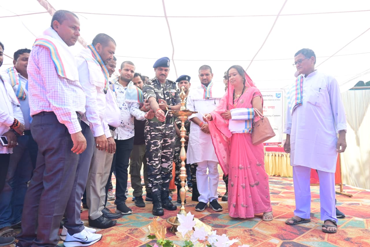 बेतिया/वाल्मीकिनगर:- एसएसबी 21वीं वाहिनी बगहा द्वारा कमांडेंट तपेश्वर संबित राउत के नेतृत्व में सीमावर्ती क्षेत्र गोनौली स्थित हाई स्कूल के प्रांगण में नागरिक कल्याण कार्यक्रम के तहत सीमावर्ती क्षेत्र के बेरोजगार व ज़रूरतमंद युवाओं एवं युवतियों को सशस्त्र बलों में भर्ती से पूर्व प्रशिक्षण (शारीरिक, लिखित एवं चिकित्सा तैयारी हेतु) का शुभारंभ मुख्य अतिथि धीरेन्द्र प्रताप सिंह विधायक वाल्मिकीनगर के उपस्थिति में किया गया। इस प्रशिक्षण कार्यक्रम में सीमावर्ती क्षेत्र, के गांव गोनौली, संतपुर, सोहरिया लक्ष्मीपुर, रमपुरवा, हरनाटाड़, चम्पापुर, दरुआबारी, कटहरवा नौरंगिया दोन, गर्दी दोन, लक्ष्मीपुर, बलगंगवा, परसौनी, अन्य आस पास अन्य क्षेत्र के लगभग 1000 से ज्यादा बेरोजगार युवाओं एवं युवतियों को सशस्त्र बलों में भर्ती हेतु तैयारी करायी जाएगी। जिनका प्रशिक्षण हरनाटांड़, लक्ष्मीपुर, वाल्मीकिनगर, गनौली, नौरंगिया दोन स्थान पर प्रशिक्षण दिया जाएगा जिससे सशस्त्र बलों में सीमा क्षेत्र के स्थानीय युवा एवं युवतियों को भर्ती होने में मदद मिल सके।