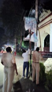 बेतिया/वाल्मीकिनगर:- थाना क्षेत्र में विधानसभा चुनाव के लिए आदर्श आचार संहिता लागू होने के बाद थाना क्षेत्र में राजनीतिक दलों द्वारा लगाए गए बैनर और पोस्टरों को हटाने का अभियान शुरू किया गया है। यह अभियान थानध्यक्ष के नेतृत्व में चलाया गया। वाल्मीकिनगर के विभिन्न इलाकों का दौरा कर जगह-जगह लगे राजनीतिक पोस्टर, बैनर और झंडों को हटाया गया। सार्वजनिक स्थलों, बिजली के खंभों और दीवारों पर लगाई गई प्रचार सामग्री को हटाया गया।