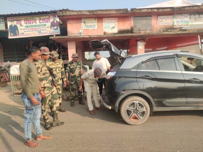 बिहार/बांका। फुल्लीडुमर प्रखंड अंतर्गत रामपूर खेसर मुख्य सड़क खेसर थाना सिमा क्षेत्र डलबा मोड़ पर विधानसभा चुनाव को लेकर बैरेकेटिंग कीया गया है जहां पर सघन बाहन जांच अभियान को लेकर दंडाधिकारी के साथ साथ पुलिस पदाधिकारी के रुप में खेसर थाना के सहायक थानाध्यक्ष संजय कुमार सिंह के साथ आधा दर्जन से उपर भी एस एफ के जबान को लगाया गया है जहां पर आने जाने बाले चार चक्का के छोटी बड़ी बाहन ,बड़ी बस ,एवं बिना हेलमेट लगाए मोटरसाइकिल की जांच सघन रुप से किया जा रहा है इस जांच अभियान को लेकर सभी प्रकार के बाहन चालकों में हड़कंप मची हुई है। बैरेटिंग स्थल पर मौजूद सहायक थानाध्यक्ष संजय कुमार सिंह ने बताया की यह जांच अभियान 14 नम्बर तक तक जारी रहेगा।
