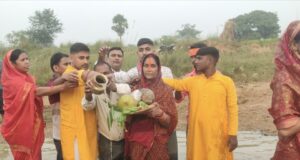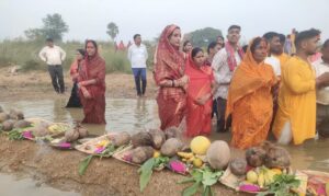 लोक आस्था का महा पर्व छठ को लेकर अस्ता चल गामी सूर्य देव को अर्घ्य देने लोहागढ़ नदी घाट पर उमड़ी श्रधालुओं की भीड।