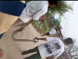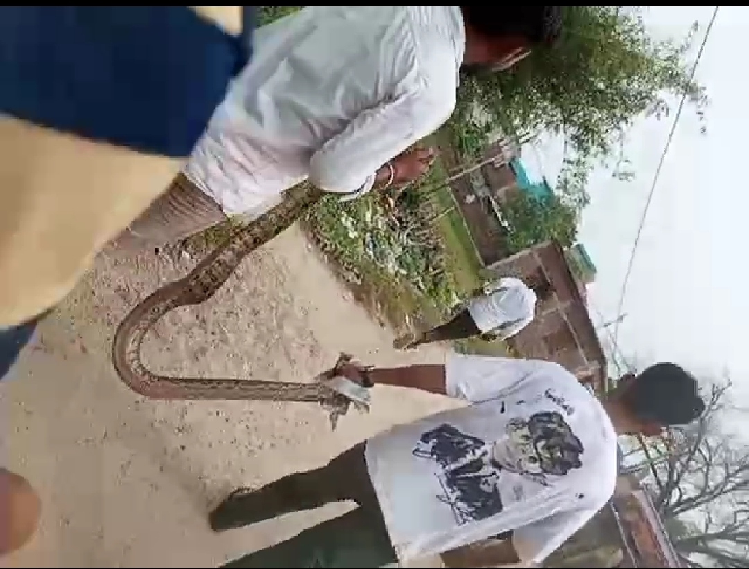 ठाकुरबारी प्रांगण में कदम वृक्ष पर ग्रामीणों ने देखा बड़ा अजगर सांप वन विभाग के द्वारा पकड़ कर जंगल में छोड़ा।