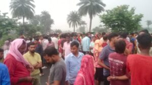 इसी दौरान चालक के द्वारा अपनी सन्तुलन खोते हुए युवक के शरीर पर ट्रक उड़ाते हुए पार हो गया। जिस से अजीत कुमार का घटना स्थल पर ही दर्दनाक मौत हो गई। घटना घटते ही स्थानीय ग्रामीणों के द्वारा फुल्लीडुमर थाना प्रभारी गुलशन कुमार को सुचना देने का काम किया गया है। परीजनों को घटना की जानकारी देते हुए स्थानीय लोगों में आक्रोश भड़क गयी है। और सैकड़ों की संख्या में लोगों के द्वारा रोड जाम कर रखा है। घटान स्थल पर फुल्लीडुमर थाना की पुलिस ,खेसर थाना की पुलिस के साथ साथ बांका से भी पुलिस पदाधिकारी पहुंचे हुए हैं। परीजनो द्वारा मुआवजे की मांग कर रही है।थाना अध्यक्ष फुल्लीडुमर गुलशन कुमार के साथ अन्य सहयोगी पुलिस पदाधिकारी के द्वारा काफी समझाने का प्रयास कर रहा है।