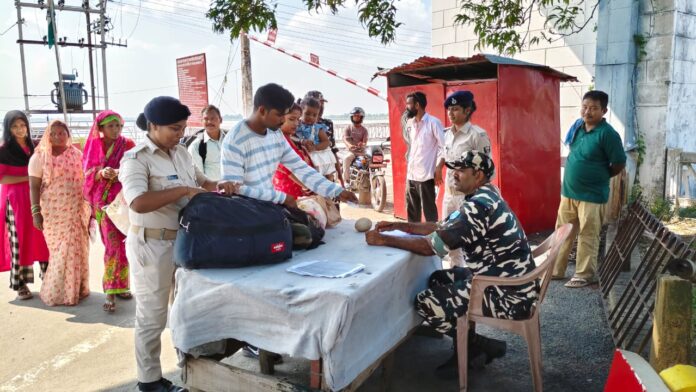 बेतिया/वाल्मीकिनगर:- आगामी बिहार विधानसभा चुनाव को लेकर इंडो नेपाल बॉर्डर पर सुरक्षा व्यवस्था मजबूत बनाने को लेकर उद्देश्य से वाल्मीकि आश्रम एवं चकदहवा के रास्ते नेपाल आने जाने वाले संदिग्ध लोगों के प्रवेश पर रोक लगा दी गई है। साथ ही जवान सीमा पर गहन चौकसी के साथ गश्त लगाने, अपराधी तत्वों पर पैनी निगाहें रखे हुये है।आगामी बिहार विधानसभा चुनाव के मद्देनजर पुलिस एवं एसएसबी के द्वारा इन्डो – नेपाल सीमा गंडक बराज पर चौकसी बढ़ा दी गई है। चेकपोस्ट पर सभी आने-जाने वालों की तलाशी ली जा रही है। विधानसभा चुनाव को लेकर भारत-नेपाल सीमा पर एसएसबी जवान अलर्ट मोड में हैं। राष्ट्रविरोधी तत्वों पर एसएसबी की पैनी नजर है। बॉर्डर पर 24 घंटे एसएसबी जवान पहरेदारी कर रहे हैं। चेकपोस्ट पर सीसीटीवी व नाइट विजन से निगरानी हो रही है। नेपाल से भारत में प्रवेश करने वाले सभी व्यक्तियों को अपना पहचान पत्र दिखाना अनिवार्य है। भारत-नेपाल सीमा पर तैनात एसएसबी जवानों ने सुरक्षा व्यवस्था के मद्देनजर चौकसी बढ़ा दी है। नेपाल के आर्म्स पुलिस फोर्स व अन्य सुरक्षा बलों के साथ सामंजस्य स्थापित कर बॉर्डर पर साझा गश्त की जा रही है। दोनों देशों के अधिकारी सीमा पर शांति और निष्पक्ष चुनाव सुनिश्चित करने के लिए साथ मिलकर काम कर रहे हैं।