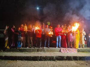 बेतिया/वाल्मीकिनगर :- भारत नेपाल सीमा पर अवस्थित संगम तट के बेलवा घाट परिसर में अंतर्राष्ट्रीय न्यास स्वरांजलि सेवा संस्थान द्वारा 148 वीं नारायणी गंडकी महा आरती कार्यक्रम का आयोजन किया गया। कार्तिक पूर्णिमा के पावन अवसर पर देर शाम आयोजित इस कार्यक्रम का शुभारंभ संस्था की राष्ट्रीय अध्यक्षा अंजू देवी ,मैनेजिंग डायरेक्टर संगीत आनंद, निर्माता एचेल थारू, फाइटर जयदेव कुमार ,डॉ. नंद महतो, स्वास्थ्यकर्मी कुमारी संगीता, निर्माता अरविंद अकेला , सत्येंद्र सिंह, सुमन देवी, थरुहट के केदार महतो, अहिल्या कुमारी, मीरा देवी ,दुर्गेश महतो, एवं मुकेश कुमार ने संयुक्त रूप से दीप प्रज्वलित करके किया। थरुहट के निर्माता एचेल थारू ने अपने संबोधन में कहा कि कार्तिक पूर्णिमा का अपना विशेष महत्व है। समाजसेवी संगीत आनंद ने कहा कि संस्था के विभिन्न सामाजिक और धार्मिक कार्यक्रमों द्वारा बिहार को गौरवान्वित करने की कोशिश की जाती है। केदार महतो एवं दुर्गेश महतो ने पर्यावरण संरक्षण संवर्धन विषय पर जोर दिया। संस्था के एम.डी संगीत आनंद ने कहा कि कार्तिक पूर्णिमा के दिन संगम तट पर स्नान दान की विशेष महिमा है। अंजू देवी ने कहा कि इसी तट पर इस महाआरती की शुरुआत 6 नवंबर 2014 को हुई थी। संस्था के मैनेजिंग डायरेक्टर संगीत आनंद ने कहा कि इस नारायणी गंडकी महा आरती के आज 11 वर्ष पूरे हो गए हैं। इस खुशी में अतिथिगण को अंग वस्त्रम द्वारा सम्मानित किया गया है। कुमार फाउंडेशन के संस्थापक अध्यक्ष आकाश कुमार के सौजन्य से स्वरांजलि सेवा संस्थान के बैनर तले जरूरतमंद लोगों के बीच पौष्टिक आहार न्यूट्री मिक्स फूड पैकेट का निःशुल्क वितरण किया गया। पौष्टिक आहार का पैकेट पाकर बच्चों के चेहरे खिल उठे। कार्तिक पूर्णिमा के अवसर पर संस्था द्वारा विशेष दरिद्र नारायण भोज का आयोजन भी किया गया। जिससे दर्जनों लावारिस दिव्यांग, विक्षिप्त और मानसिक बीमार लाभान्वित हुए। महाप्रसाद की व्यवस्था स्वास्थ्य कर्मी कुमारी संगीता एवं महिला समाजसेवी स्वरांजलि सरगम द्वारा की गई। इस अवसर पर बड़ी संख्या में भक्तजन उपस्थित थे। सभी भक्तों ने पौधारोपण का संकल्प लिया।इस अवसर पर हिरिमती देवी, गायक करण भोजपुरिया ,मधु देवी , रितिका कुमारी ,संध्या कुमारी, गायक राजा कुमार, मनीषा, रागिनी, आकृति, एवं धनु की भूमिका सराहनीय रही। रुद्र साबुन एवं शहद उद्योग के सत्येंद्र सिंह, सुमन देवी ,समाजसेवी मुकेश कुमार को संगीत आनंद एवं निर्माता एचेल थारू द्वारा सम्मानित किया गया। संचालन फाइटर जयदेव कुमार ने किया जबकि धन्यवाद ज्ञापन केदार महतो एवं दुर्गेश महतो ने किया। कार्यक्रम के अंत में संस्था के पूर्व संरक्षक स्मृति शेष शिक्षाविद राधेश्याम पांडे एवं लोक गा