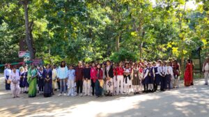 बेतिया/वाल्मीकिनगर:- उत्तर प्रदेश के छात्रों का दल वाल्मीकि टाइगर रिजर्व में भ्रमण किया। छात्रों का दल वाल्मीकिनगर पहुंचा और यहां सैलानी बन कर पर्यटन किया। उन्होंने पैदल घूमकर जंगल के चप्पे चप्पे को देखा। यही नहीं जंगल में एक स्थान पर अचानक भालू के सामने आ जाने पर होनहार सहम गए। भालू के सामने आने पर बच्चों को अचरज हुआ। विद्यालय परिवार की तरफ से कराए गए इस भ्रमण को सभी बच्चों ने सराहा। उत्साहित बच्चों ने जंगल में कई जगह सेल्फी भी ली।इस दौरान स्कूली बच्चों को वीटीआर का भ्रमण कराया गया और वन्य प्राणियों और वनों के महत्व को बताया गया। इस दौरान वन परिक्षेत्र में बच्चों को पैदल घुमाया गया और बच्चों को वनों को प्रदुषण मुक्त बनाने के लिए पॉलीथिन का उपयोग नहीं करने के लिए जागरूक किया गया। वन भ्रमण के दौरान छात्र-छात्राओं ने भालू ,हिरण, बंदर, मोर, जंगली मूर्गा आदि को खुले में विचरण करते देखा। उन्होंने विभिन्न पेड़-पौधे और वन्यप्राणियों के पगमार्क भी देखे। इस अवसर पर छात्र-छात्राओं को वन्यप्राणी संरक्षण और वन का मानव जीवन में क्या महत्व है। इसके बारे में बताया गया। उनको वीटीआर में वन्यप्राणी कैसे विचरण करते हैं। बफर और कोर एरिया क्या होता है? इसके बारे में जानकारी दी गई।