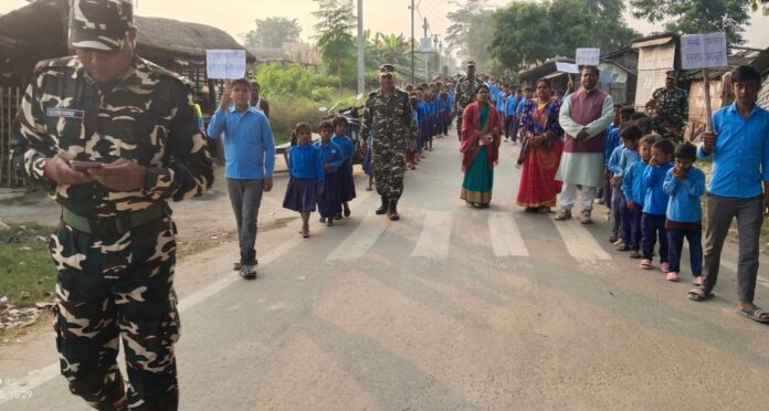 बेतिया/वाल्मीकिनगर:- एसएसबी 21वीं वाहिनी बगहा के अधीनस्थ रमपुरवा कैंप के ठाढ़ी बीओपी इंचार्ज सब इंस्पेक्टर महेंद्र सिंह व सहायक उप निरीक्षक गौतम बिश्वास के नेतृत्व में सोमवार की शाम कैलाशपुर ठाढ़ी मध्य विद्यालय के छात्र-छात्राओं के साथ पर्यावरण संरक्षण, पौधारोपण एवं आस पड़ोस के साफ सफाई करने के साथ खुद के स्वच्छता बनाए रखने के लिए एक जागरूकता रैली निकाली गई। इस रैली में विद्यालय के शिक्षकों के साथ सैकड़ो की संख्या में छात्र-छात्राएं शामिल थे। इस बाबत सब इंस्पेक्टर महेंद्र सिंह ने बताया कि हम जिस जगह पर रहते हैं वहां की साफ सफाई करने में हमें कोई दिक्कत नहीं होनी चाहिए। जब हम अपने घर के अगल-बगल के जगह को साफ सफाई रखेंगे, तो हमारा पड़ोसी भी उसका अमल करेंगे। इससे हम खुद स्वच्छ रहते हैं और दूसरों को भी इसके लिए प्रेरित करते हैं। आए दिन हम विभिन्न प्रकार के बीमारियों से संक्रमित होते हैं, उससे बचने का एक ही उपाय है हम अपने आस पड़ोस की साफ सफाई रखें। इससे हमारा पर्यावरण सुरक्षित रहेगा और हम भी सुरक्षित रहेंगे। साथ ही प्रत्येक व्यक्ति को कम से कम महीने में एक पौधा रोपण करना आवश्यक है ताकि हमारी पृथ्वी ग्लोबल वार्मिंग से बच सके। इस रैली के माध्यम से लोगों को अपनी स्वच्छता का ध्यान रखना तथा पर्यावरण संरक्षण में अपना योगदान देने के लिए जागरूक किया गया।