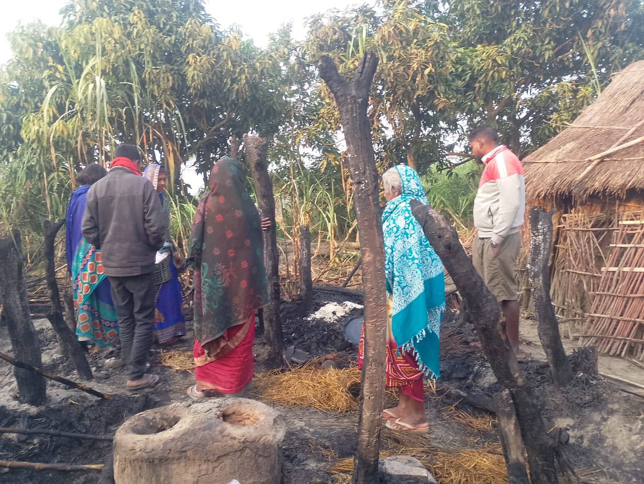 बाढ़ और कटाव के बाद अग्नि देव का प्रकोप सह रहे है बाढ़ प्रभावित झंडू टोला के ग्रामीण
