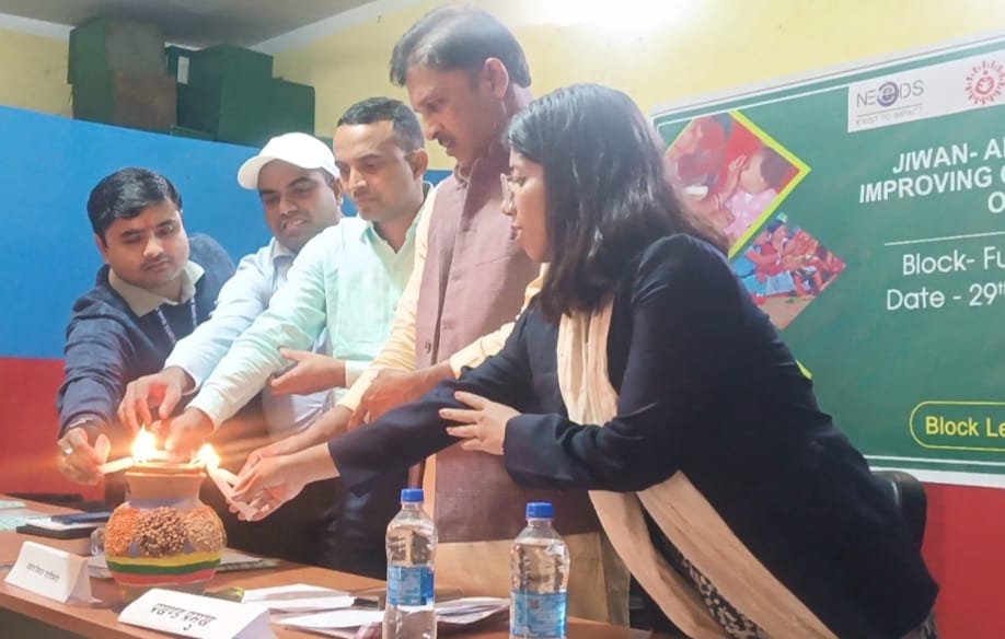 जीवन परियोजना का नीड्स द्वारा संचालित प्रखंड स्तरीय बाल पोषण से संबंधित जागरुकता अभियान चलाते हुए कार्यक्रम का दीप प्रज्ज्वलित करते हुए किया गया उद्घाटन।