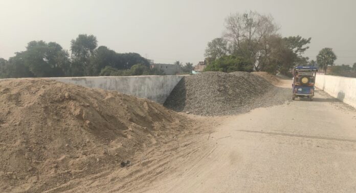 बिहार/बांका। बांका जिला फुल्लीडुमर प्रखंड अंतर्गत खेसर मुख्य सड़क से गुजरने वाली सड़क जो विश्वकर्मा टोला ,खासाधोल,सत्तीघाट,बेलडिहा गांव से गुजरते हुए सड़क बांका बेलहर मुख सड़क बेलडिहा मोड़ पर मिलती है इसी बिच भुतनाथ शिव मंदिर के समीप लोहागढ़ नदी में बने पुल पर रोड निर्माण के दौरान कयी माह पूर्व से काफी बालू और छररी रख देने के कार्न पुल के करीबन तीन भाग से उपर अतिक्रमण हो जाने के कारन याता यात सुविधा में काफी परेशानियों चालकों को उठाना पड़ रहा है स्थानीय ग्रामीण विश्वकर्मा टोला ,खासाधोला,सत्तीघाट के अभी मन्नु शर्मा,बबलू शर्मा,अरुण शर्मा ,नयन शर्मा,जोगेन्दर रजक ,मनटुन रजक ,दिलीप मंडल ,इसके अलावे भी इस रोड से गुजरने बाले दर्जनों लोगों के द्वारा संबेदक की मनमानी और पर निर्माण विभाग के कनीय अभियंता, कार्य पालक अभियंता की ला प्रवासी के कारन प्रतिदिन मोटरसाइकिल चालक , साइकिल चालक ,टोटो ,कमी बार दुर्घटना हो चुका है।फिर भी संबेदक के द्वारा नहीं हटाया जा रहा है इससे ग्रामीण काफी गुस्से में है।इस संबंध में जब पर निर्माण विभाग के कनीय अभियंता राज राम कुमार और कार्यपालक अभियंता मोहम्मद सैनूल को दिए गए जानकारी पर बताया गया की लोहागढ़ नदी पर बने पुल पर ढेर सारे छररी और बालू का में कर दिया गया है और याता यात सुविधा में आम आबाम के साथ साथ साइकिल, मोटरसाइकिल,के अलावे छोटी बड़ी बाभन को आने जाने में काफी परेसानी हो रही है तो निश्चित रुप में दो तीन रोज के अंतर्गत पुल पर से सारे मेटेरीयल को हटाया जायेगा जिससे आम लोगों के सुविधा में किसी प्रकार की कठिनाइयां नहीं हो।