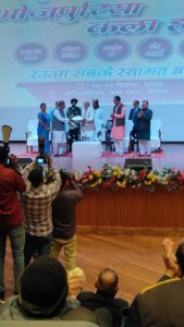 अपने संबोधन में महामहिम ने चंपारण की धरती को नमन करते हुए कहा कि संस्कार भारती द्वारा इस तरह का कार्यक्रम बहुत ही सराहनीय रहा। इस तरह के कार्यक्रम में संस्कार सीखने को मिलता है। वही संस्कार भारती द्वारा दिए गए विषय “स्व” पर बोले कि बहुत ही अच्छा विषय है, मैं कौन हूं ?इसे जानना अति आवश्यक है! अगर मानव इसे समझ ले, तो जीवन में आने वाली बहुत सी कठिनाइयां आसानी से सुलझाई जा सकती हैं। इस अवसर पर उपस्थित पूर्व प्राचार्य पंडित भरत उपाध्याय ने बताया कि महामहिम का संबोधन आध्यात्मिक उपदेश के रूप में उपस्थित लोगों द्वारा साराहा गया। कार्यक्रम का समापन राष्ट्रगान के साथ हुआ इस अवसर पर 17 नामचीन लोगों को सम्मानित किया गया। इसके पूर्व महामहिम ने थारू जनजाति द्वारा लगाए गए हाट का निरीक्षण किया। जिसमें थारू महिलाओं द्वारा बनाई गई हस्तकला एवं उनका नृत्य आकर्षण का केंद्र रहा।