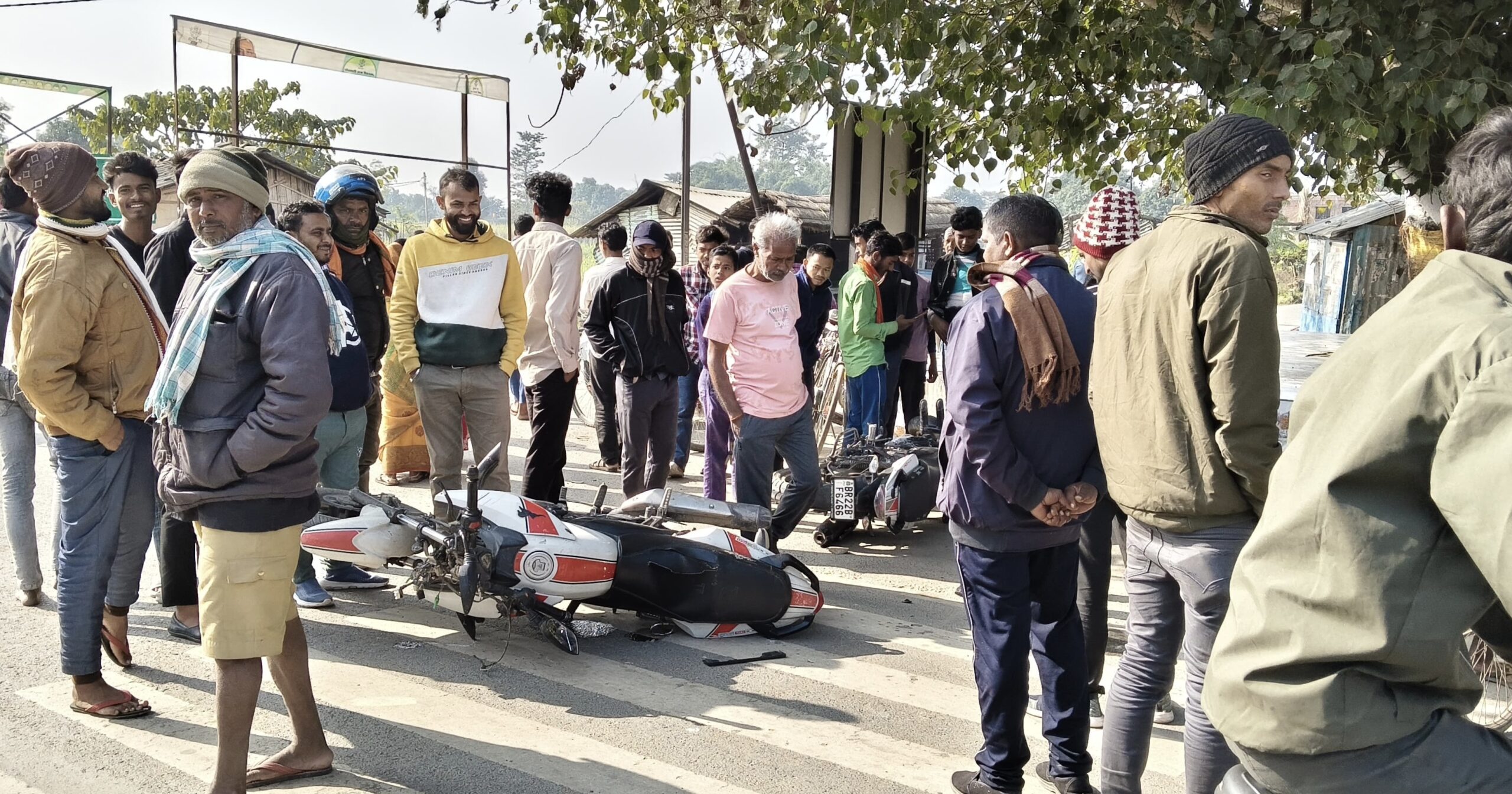 बेतिया/वाल्मीकिनगर:- थाना क्षेत्र के हवाई अड्डा चौक पर गुरुवार की सुबह एक दर्दनाक हादसा हुआ। दोनों बाइक सवार वाल्मीकिनगर के टंकी बाजार व विजयपुर के निवासी बताये जा रहे हैं । प्रत्यक्षदर्शियों ने बताया कि घायलों में इम्तियाज कुरैशी पिता अलीम कुरैशी विजयपुर 3 आरडी पुल निवासी एवं मुन्नीलाल साह उम्र लगभग,60 वर्ष की हालत नाजुक बताई गई है।
