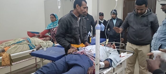 बिहार/बांका। बांका जिला अंतर्गत फुल्लीडुमर थाना क्षेत्र खेसर रामपूर मुख सड़क विधुत आपूर्ति कार्यालय के आसपास विशनपुर गांव के पास रोड आर पार करने के ही दौरान एक महिला को जोरदार धक्का मार देने के ही दौरान चालक सहीत तीन लोग जख्मी हो गया घटना होते ही आसपास के ग्रामीण जुट गए सभी तीनों जख्मियों को स्थानीय लोगों के द्वारा प्राथमिक इलाज हेतु सामुदायिक स्वास्थ्य केंद्र फुल्लीडुमर लाया गया जहां इलाज करते हुए डाक्टर अफताब आलम ने तिनो जख्मियों रामप्रवेश यादव उम्र45 वर्ष पिता श्रीधर यादव साकिन आमाटिकर, गुड़िया देवी पति दिनेश राय उम्र 40 वर्ष साकिन विशनपूर। प्रकाश राय पिता विश्वनाथ राय साकिन छत्तर को बेहतर इलाज हेतु सरकारी एम्बुलेंस से मायागंज भेज दिया गया है इस संबंध में फुल्लीडुमर थानाध्यक्ष गुलशन कुमार ने बताया कि घटना की जानकारी प्राप्त हुई है सभी तिनो जख्मियों को बेहतर इलाज हेतु माया गंज भेजा गया है किसी के पक्ष से कोई आवेदन प्राप्त नहीं हुआ है आवेदन मिलते ही जांचों उपरांत आगे की कार्यवाही की जायेगी।
