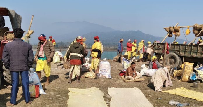 बेतिया/वाल्मीकिनगर:- इन्डो- नेपाल बॉर्डर स्थित संगम तट पर माघ मौनी अमावस्या के अवसर पर स्नान के लिए इस बार वाल्मीकिनगर में बिहार, उत्तर प्रदेश और नेपाल के विभिन्न जगहों से सैलानियों का पहुंचना शुरू हो गया है। मन में आस्था और भक्ति का भाव लिए त्रिवेणी संगम तट की ओर आने वाले श्रद्धालुओं की वेशभूषा भी वैरागी जैसा है। तन में पीली धोती लपेटे हुए बाल मुंडवाए, सर पर कुश की चटाई लिए हुए हर-हर गंगे व हर हर महादेव की जय घोष के साथ आने वाले श्रद्धालुओं को देख स्थानीय लोगों के मन में भी भक्ति भावना जागृत होने लगी है। भक्ति भावना से सराबोर इन श्रद्धालुओं को वाली माघ महीने की कड़ाके की ठंड का भी फिक्र नहीं है। शुक्रवार को पीली धोती में भगवान शंकर की भक्ति भावना में लीन यूपी के गोरखपुर, कुशीनगर, पूर्वी चंपारण के ढाका, घोड़ासहन एवं चिरैया के श्रद्धालुओं ने वाल्मीकि टाइगर रिजर्व से सटे क्षेत्र में पेड़ों के नीचे भजन कीर्तन कर रात गुजारने का फैसला किया है। गंगा स्नान के 24 घंटे पूर्व से ही वाल्मीकि नगर भक्तिमय हो चुका है। इन श्रद्धालुओं को नारायणी की ठंड जल में स्नान करने को लेकर कष्ट ना हो इसके लिए सूर्य देव ने भी अपनी कृपा बना रखी है। तीन दिन पूर्व कुहासे से अच्छादित यह क्षेत्र अब भगवान भास्कर की कृपा से ठंड से राहत पा चुका है। जिसके कारण इस साल पिछले साल की अपेक्षा गंगा स्नान के लिए आने वाले श्रद्धालुओं की संख्या में भी इजाफा होने की संभावना है।