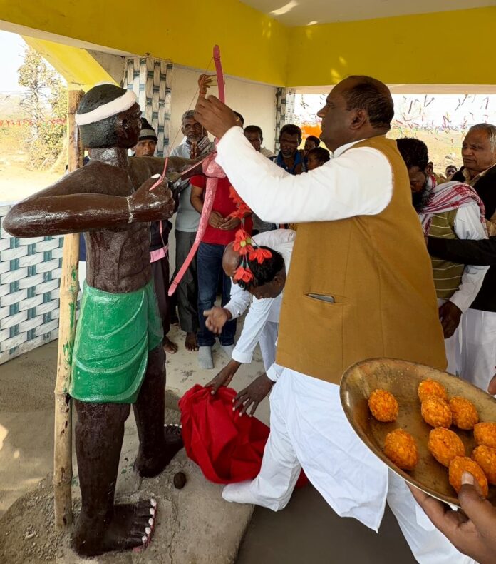 अमर शहिद तिलका मांझी के आदमकद प्रतिमा का मोहलीदोल आदीवासी गांव में लगाते हुए ज़िला परिषद अध्यक्ष ने किया अनावरण।