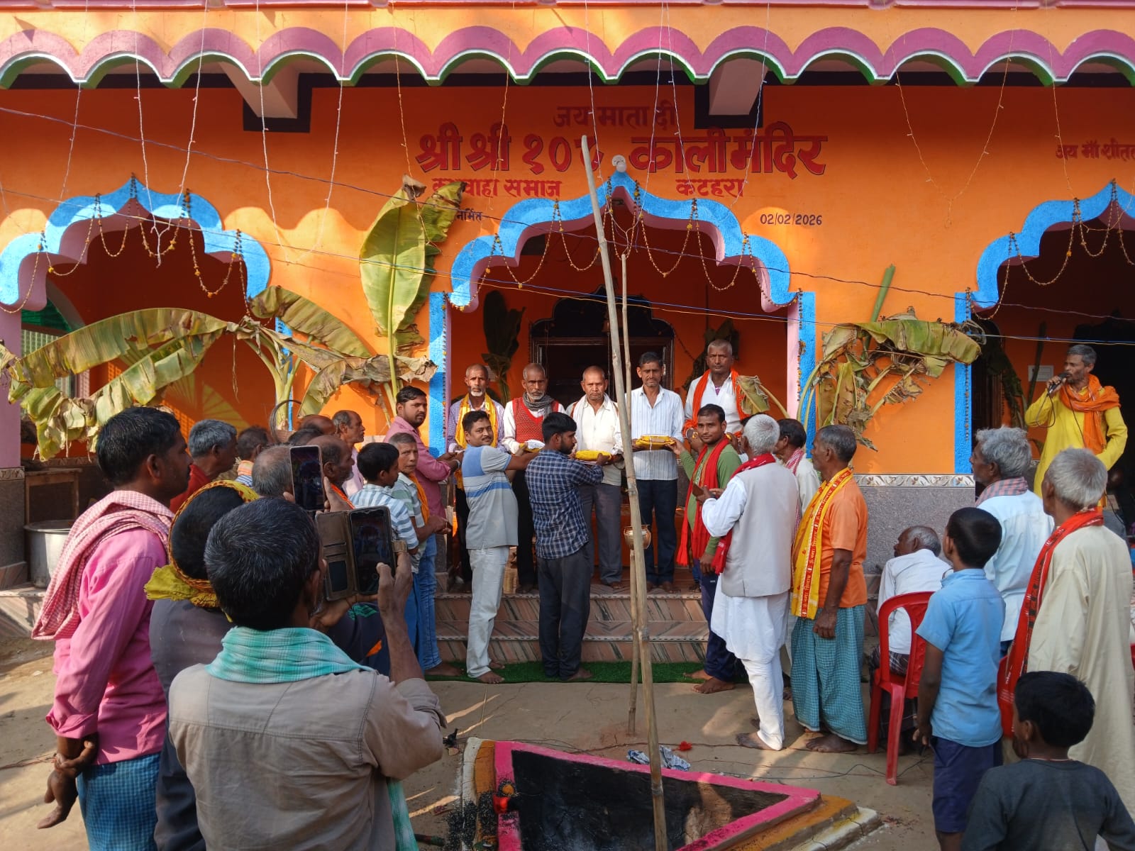 बिहार/ बांका। प्रखंड के सादपूर पंचायत अंतर्गत कटहरा गांव में मां काली का प्राण प्रतिष्ठा नव निर्मित मंदीर भवण में कासी से मंगाएं गए विद्वान पंडितों कू द्वारा बैदिक मंत्रों उच्चारण के साथ ही धार्मिक नियमों को अक्सर सह पालन करते हुए मां काली का प्राण प्रतिष्ठा का कार्य समापन हुआ इस धार्मिक कार्य में गांव कू काफी संख्या में धर्मावलंबियों के द्वारा सहयोग करने का काम किया गया इसके साथ ही करवा चावल चना दाल कू अन्य मिश्रण के साथ शुद्ध घी डालते हुए मां काली को भोग लगाते हुए प्रसाद का वितरण पूरे गांव स्तर पर खिलाने का कार्य किया गया मोके पर पूर्व मुखिया नरेश महतो , अशोक महतो, अनिल महतो, अरुण महतो, बरुण महतो, मनोज प्रसाद महतो, कुन्दन कुमार कुशवाह, शैलेन्द्र महतो, प्रदीप महतो,मकुनी महतो, इन्द्रदेव प्रसाद महतो ,के अलावे भी इस पुन्य कार्य में गांव के काफी संख्या में यूवा वर्गों के द्वारा सहयोग किया गया।