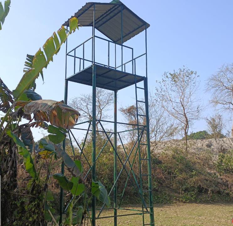 वन विभाग के सौजन्य से फसल सुरक्षा के लिए लगाए जा रहे सुरक्षित मचान