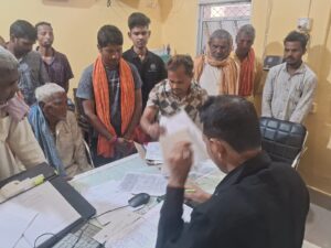 बिहार/बांका। बांका जिला अंतर्गत फुल्लीडुमर के अंचल अधिकारी मनोज कुमार के द्वारा प्रत्येक शनिवार की भांति इस भी शनिवार को भी भुमी विवादों को लेकर अपने ही कार्यालय में जनता दरबार लगाते हुए सुनवाई की गयी इस दौरान तीन फरियादियों का मामला को लेकर वादी एवं प्रतिवादियों का अवलोकन करते हुए सुनवाई की गयी है जानकारी देते हुए बताया कि फुल्लीडुमर थाना क्षेत्र के वादी उमेश सिंह पिता स्वर्गीय नारायण सिंह ह साकीन केंदुआर थाना फुल्लीडुमर जिला बांका प्रतिवादी बैकुंठ सिंह पिता स्वर्गीय मंगनी सिंह,अजय सिंह,मंटु यादव ,अनीरुध यादव सभी साकीन केंदुआर थाना फुल्लीडुमर जिला बांका प्रथम पक्ष के द्वारा खतियानी जमीन सोनू के नाते कमी वषों से लगान रसीद कटाते आ रहा है लेकीन भुमी का जोत आबाद प्रतिवादि कर रहा हे इस दौरान दोनों पक्षों के ध्यानार्थ साथ ही दोनों पक्षों के कागजातों का अवलोकन करते हुए सक्षम न्यायालय बांका भेज दिया गया है वहीं दूसरी मामलाओ की सुनवाई की गयी इस दौरान बताया गया की वादी महेंद्र पासवान पिता कद्दु पासवान, महेश्वरी पासवान ,साकीन मोतिया प्रतिवादी भगवान शर्मा, कमलेश्वरी शर्मा,भिखारी शर्मा, सुमीत शमां,,भी साकीन मोतिया थाना फुल्लीडुमर जिला बांका दोनों पक्षों के कागजातों का अवलोकन करते हुए एंव दोनों पक्षों के बयानों को सुनते हुए मामला को दोनों पक्षों का मामला को निष्पादन किया गया है जिसकी तीसरा मामला को लेकर सुनवाई करते हुए वादी गोविंद यादव साकीन हाहा गोडा प्रतिवादी रामदेव यादव ,वो गिरेशर यादव ,मोहन यादव,प्रथम पक्ष उपस्थित हुए जबकी दुसरी पक्ष के लोग जानता दरवार में उपस्थित नहीं हो पाया इस दोरान अंचल अधिकारी मनोज कुमार के द्वारा अगले शनिवार को दोनो पक्षों को उपस्थित होने को लेकर कहा गया है तब ही सुनवाई करने की बात कही गई है।