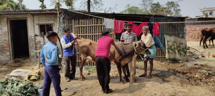 बगहा/चौतरवा। बगहा 1 प्रखंड अंतर्गत ग्राम पंचायत राज पतिलार में पशुपालन विभाग द्वारा संचालित पशु मोबाइल चिकित्सालय की टीम ने ग्रामीण क्षेत्र का परिभ्रमण कर पशुओं का इलाज किया। इस दौरान गांव में गाय, भैंस, बकरी सहित अन्य पशुओं की जांच कर बीमार पशुओं को दवा देकर उपचार किया गया। यह कार्यक्रम मुखिया प्रतिनिधि डॉ. अभिषेक मिश्रा की उपस्थिति में संपन्न हुआ। उन्होंने पशुपालकों से पशुओं की नियमित देखभाल करने तथा समय-समय पर टीकाकरण कराने की अपील की। साथ ही कहा कि सरकार द्वारा पशुपालकों की सुविधा के लिए मोबाइल पशु चिकित्सालय की व्यवस्था की गई है, जिससे गांव में ही पशुओं का इलाज संभव हो पा रहा है। पशु चिकित्सक विनोद कुमार झा ने पशुपालकों को पशुओं के संतुलित आहार, साफ-सफाई तथा बीमारियों से बचाव के बारे में भी जानकारी दी।