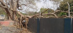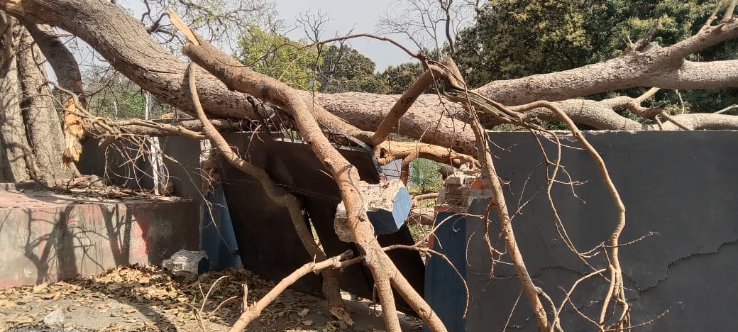 तेज हवा का कहर, मुख्य अभियंता आवास के गेट पर गिरा 60 साल पुराना पीपल का विशाल पेड़, बड़ा हादसा टला