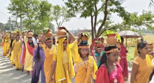 बेतिया/वाल्मीकिनगर:- थाना क्षेत्र के चंपापुर गोनौली पंचायत अंतर्गत हरैयाकोट स्थित दुर्गा मंदिर में चैत्र नवरात्र के पावन अवसर पर गुरुवार को भव्य कलश यात्रा के साथ नौ दिवसीय पूजनोत्सव का शुभारंभ हुआ। इस धार्मिक आयोजन में 151 कन्याओं ने भाग लेकर पूरे क्षेत्र को भक्तिमय बना दिया। कलश यात्रा मंदिर परिसर से प्रारंभ होकर त्रिवेणी संगम से निकलने वाले त्रिवेणी कैनाल तक पहुंची, जहां वैदिक मंत्रोच्चारण के बीच पवित्र जल भरकर पूजा स्थल पर स्थापित किया गया। कलश यात्रा के दौरान कन्याओं द्वारा गूंजते “जय माता दी” के जयघोष से वीटीआर (वाल्मीकि टाइगर रिजर्व) से सटे आदिवासी बहुल क्षेत्र का वातावरण पूरी तरह भक्तिमय हो उठा। श्रद्धालुओं की भारी भीड़ इस धार्मिक यात्रा में शामिल हुई और पूरे मार्ग में भक्ति का अद्भुत दृश्य देखने को मिला। पूजा समिति के अध्यक्ष लक्ष्मी नारायण महतो ने बताया कि घने जंगलों के बीच स्थित यह दुर्गा मंदिर अत्यंत प्राचीन और आस्था का केंद्र है। यहां प्रत्येक वर्ष शारदीय और चैत्र नवरात्र दोनों अवसरों पर विधि-विधान से नौ दिनों तक पूजा-अर्चना की जाती है। उन्होंने कहा कि इस बार भी पूजा को शांतिपूर्ण और भव्य बनाने के लिए समिति के सभी सदस्य पूरी निष्ठा के साथ जुटे हुए हैं। पूजा समिति में उपाध्यक्ष मंतोष यादव, सरपंच प्रतिनिधि भूपेंद्र कुमार महतो, अभिषेक कुमार सिंह, अनिल पंडित, वीरेंद्र राम एवं ज्योति उरांव सहित दर्जनों कार्यकर्ता 24 घंटे व्यवस्था संभालने में लगे रहेंगे। नवरात्र के अवसर पर 27 मार्च से 29 मार्च तक मंदिर परिसर में भव्य मेले का आयोजन भी किया जाएगा। मेले में सांस्कृतिक कार्यक्रमों के साथ-साथ खेलकूद प्रतियोगिताओं का भी आयोजन होगा। 26 मार्च की रात से भजन-कीर्तन, नृत्य और संगीत कार्यक्रमों की शुरुआत होगी, जिसमें थरुहट क्षेत्र के कलाकार भी अपनी प्रस्तुति देंगे। विशेष बात यह है कि जिस क्षेत्र में कभी का प्रभाव रहा करता था, वहां अब भक्ति और शिक्षा का माहौल देखने को मिल रहा है। नवरात्र के इस आयोजन ने सामाजिक समरसता और सांस्कृतिक जागरूकता को नई दिशा दी है। कलश यात्रा के दौरान भी भारी संख्या में पुलिस बल तैनात रहा।