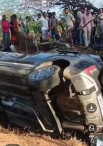 कर और मोटरसाइकिल की जोरदार टक्कर में तीन की हुई घटना स्थल पर ही मौत अन्य सवार घायल।