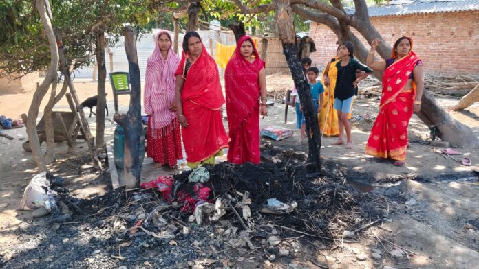 लवकुश घाट में रहस्यमयी आग का आतंक, राख हुआ झोपड़ी, वजह बनी पहेली।