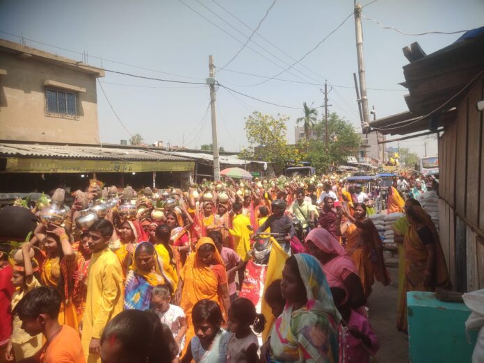 7 अप्रैल से 11 अप्रैल तक होगा महा गायत्री यज्ञ इसको लेकर निकाली गई आज मंगलवार को कलश शोभा यात्रा।